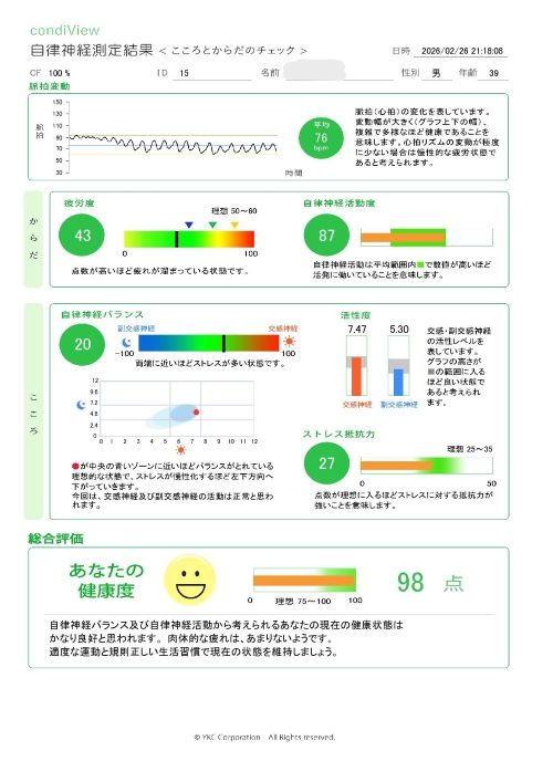 ご本人は食事にも気を使い、体調を整えて来られましたが、自律神経測定器「CondiView」の数値は正直でした。